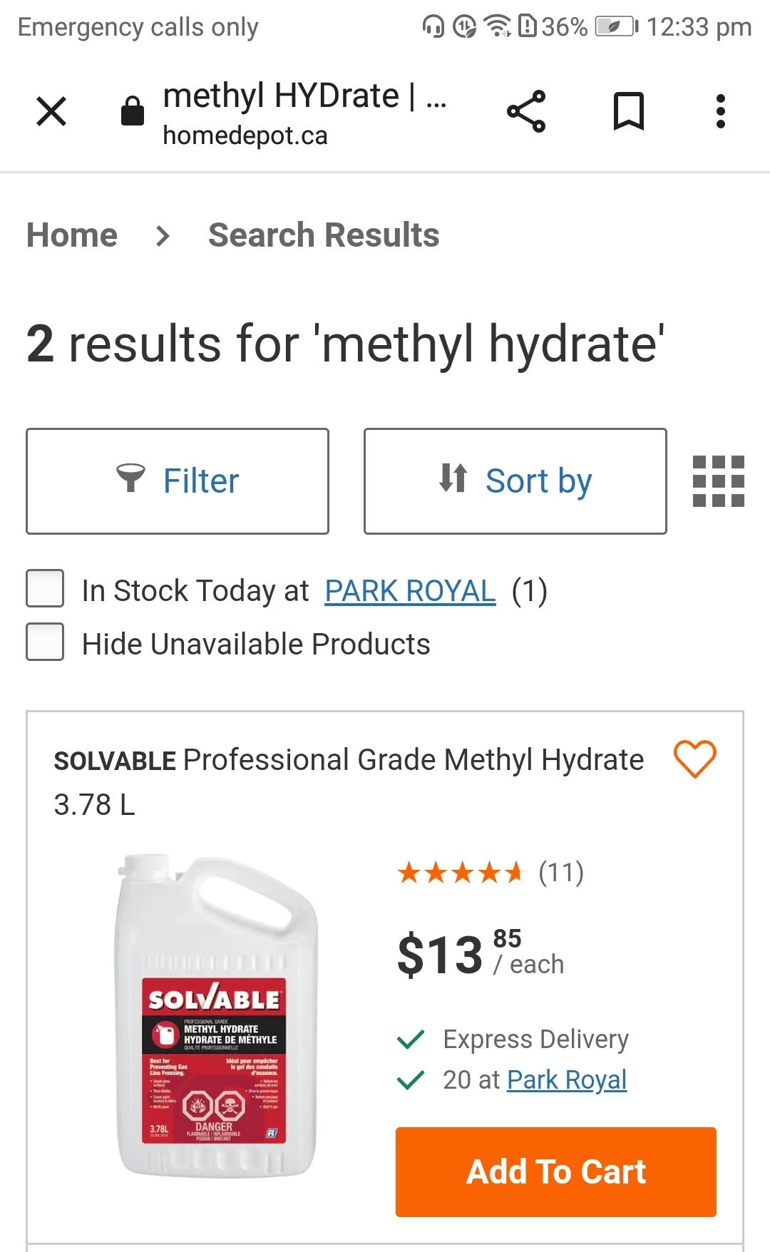 If anyone reading this is going to Park Royal this week and could scoop a bottle (almost 4L) at Home Depot, I would be able to reimburse you. Just please let me know. Can only afford one bottle, okay? Thanks.